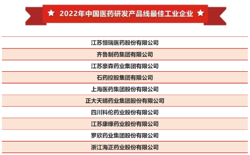 稳居榜首!AG亚娱医药再次登顶“中国医药研发产品线最佳工业企业”