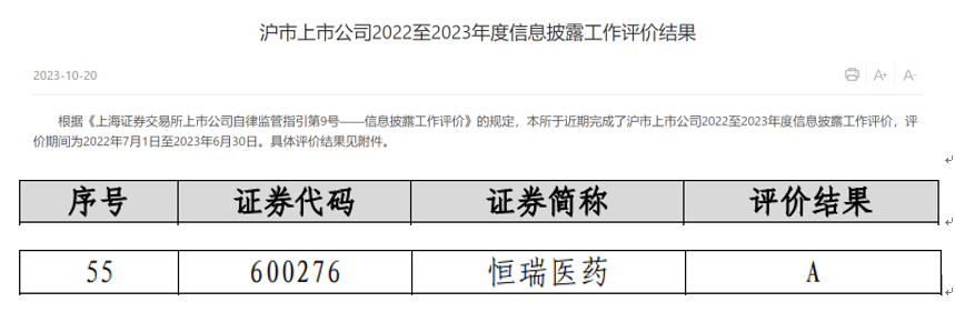 近日,上海交易所公布了沪市上市公司2022-2023年度信息披露工作评价结果,凭借在信息披露、规范运作以及投资者关系管理等方面的优秀表现,AG亚娱医药获评A级。本次共有2160家沪市上市公司参评(包括499家科创板上市公司),评价等级从高到低依次为A、B、C、D四类,获得A类评价的上市公司占比约18.5%。